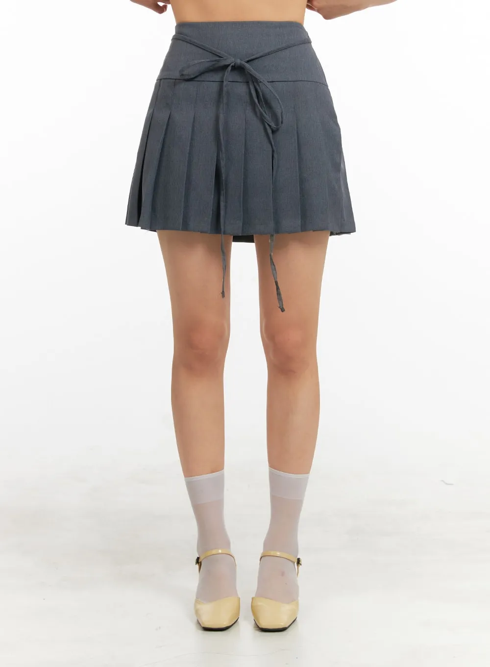 Discover the perfect mini skirt for women's fashion. This casual and romantic style is ideal for festivals or back to school. Featuring a charming ribbon and pleats detail, this solid print skirt offers a normal fit for a stylish look.